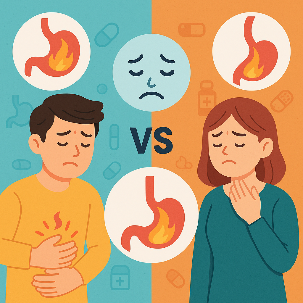 둘 다 속 쓰림을 유발하지만 원인과 기전이 다릅니다.